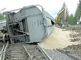 SANDPOINT — A train derailment early Thursday morning in Vay threw nine railroad cars filled with grain from the tracks, forcing Union Pacific Railroad to reroute trains onto Burlington Northern Santa Fe tracks for longer than a day.