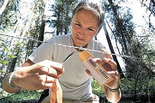 Schock, 19, and Tropkus, 24, are glad to be working outside for the summer, particularly on a project that means so much to them. The pair represents one of four teams in the Mission and lower Flathead Valleys gathering DNA material that will be used to analyze the grizzly bear population in the greater Northwest Montana area.