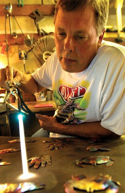 Rose, 50, crafts an array of items, including jewelry and Christmas ornaments, from copper and finishes them with the fiery touch of a torch, bringing out a rainbow of colors.