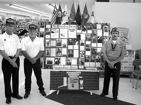 The Freedom Wall was erected by the Mission Valley Honor Guard. MVHG members Bill Blood, Daniel's cousin, and Rayman Michell were present to show their respect to the troops.