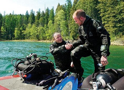 Searching an area near Mackinaw Point, two men from the Flathead County Dive Team brought up the top part of a skull they found 62 feet below the water's surface.