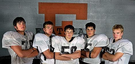 The group consists of seniors Cody Haugen, left tackle, Stetson Spooner, left guard, center Colter Bennett, Casey Poier, right guard and Tanner Osweiler, right tackle. Senior tight end Jason Russell and junior right guard Bob Hickey are also big contributors.