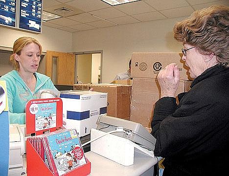 And back in Libby, Sharon Olson had more than holiday greetings to mail on Monday. She had nine boxes to send to her children and grandchildren in Wyoming, Colorado, Oregon and Columbus, Mont.