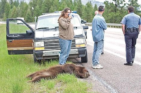 He said the bear ran a few feet to the side of the road after being hit before it died. Passing motorists helped drag the carcass out of the way of oncoming traffic and onto the shoulder shortly afterwards.