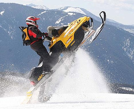Logan O'Neil, son of Jim and Donna O'Neil goes vertical while riding atop the summit of Big Creek Baldy last weekend. Exceptional snow conditions continue to draw sledders and skiers into the Kootenai Country high places.
