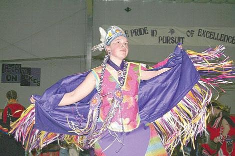Dancers came from all over the reservation to participate in the powwow that was held at the Charlo school gym. And the Warrior Society opened the ceremony.