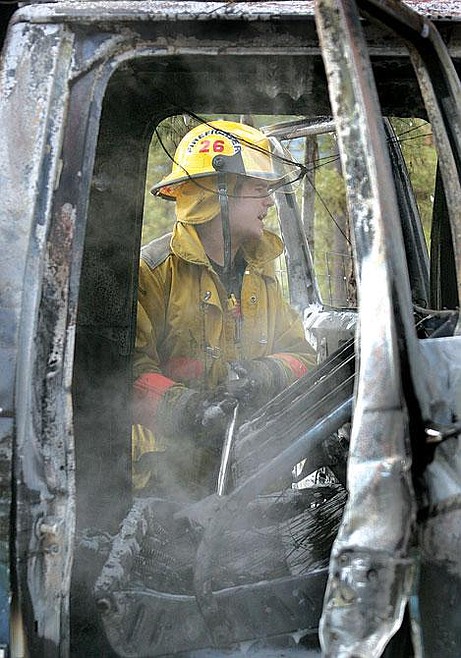 Firefighters then removed objects from the interior of the truck. Mercier said clothing, magazines and other typical items kept in vehicles can retain heat, so firefighters try to clear them out.