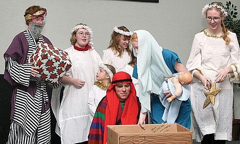 The plays and music were put on my members of the Alliance Church and ranged from solo dramas, solo singing, to a 14-person choir, which was led by Tom Bushlen, the Plains School music teacher. A group of youth showed the more traditional birth of Jesus in a manger, although they added a cardboard box to the mix, and a more modern adaptation of the birth by Jennifer Albertson of Plains, who, as Mary, mother of Jesus, was calling her mother from a telephone booth about she and Joseph having trouble finding a place to stay after their vehicle broke down.
