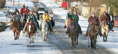 Martha Vogel, chief coordinator of the event, was glad the temperature hadn't dropped to below zero, like it did two years ago, the last time the group put on the horseback caroling event. Vogel was one of 17 riders from Hot Springs, Lonepine, Camas Prairie, and Paradise to take part in the event, which went just over an hour.