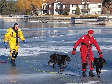 Emergency responders rescue animals that have fallen through the ice not only to save them, but also to prevent well-meaning humans from falling in too, Jordan White, who commands the Flathead County Sheriff’s Dive Team, said. Bigfork, Somers, Creston and most other volunteer fire departments in the valley are trained and equipped to perform ice rescues, he said.