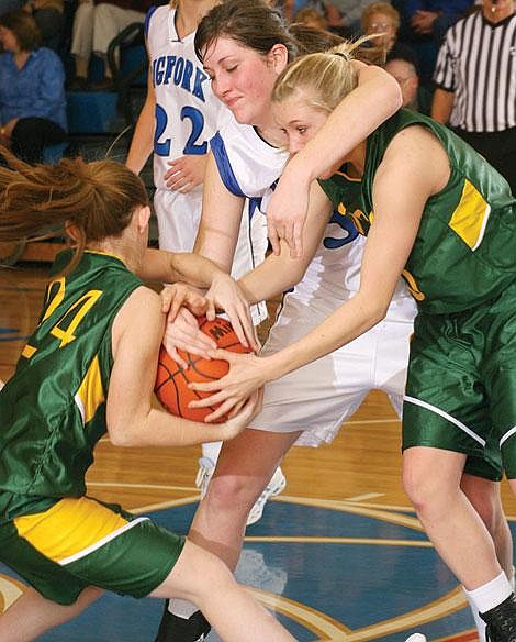 Ronan’s scoring in the second quarter made nice bookends for the Vals’ scoring. Wylie made one of two free throws early in the quarter and teammate Ashlee Cheff ended the quarter with a rebound and basket for the Maidens. Sandwiched in-between the Maidens’ three points were 19 points from the Vals. Six Valkyries — Vogel, Hilley, Kaemyn Meagher, Bowen, Haveman and Jamie Halliday — scored for Bigfork, increasing the Vals’ lead to 33-5 at halftime. Haveman recorded six rebounds, as well as one assist and one steal while Bowen added four rebounds, two assists and one steal. Vogel ended the game with three assists and one steal.