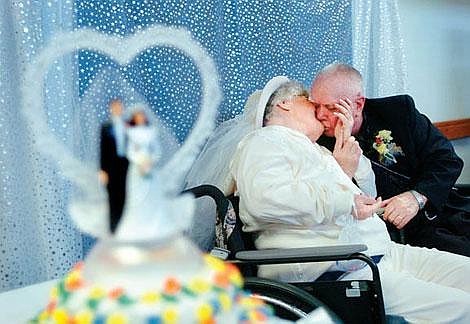 Robert Wyman and Donna Darling exchanged vows Sept. 23 at the Kalispell long-term care facility after a courtship that spanned five years. Though both are wheechair-bound, they're inseparable. They hold hands and coo over each other constantly.
