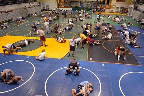 Wrestlers at this week's Montana Intensive Wrestling Camp deal with a demanding work schedule.