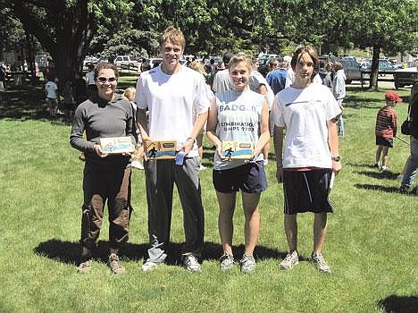 Age 1-11; 1st, Elizabeth Newhouse, 43:35; 2nd, Ada Bonnell, 45:40; 3rd, Aliana Bauducco, 45:42: Age 12-15, 1st, Erin Hiatt, 24:43; 2nd, Amy Andrews, 37:48; 3rd, Tana Schneider, 37:48: Age 16-19, 1st, Melody Braden, 21:34, overall winner; 2nd, Ashley Morman, 24:37; 3rd, Sam Hiatt, 24:40: Age 20-29, 1st, Molly Rivkin, 27:41; 2nd, Jolie Taylor, 30:56; 3rd, Emily Starley, 33:32: Age 30-39, 1st, Catherin Delsalle, 30:39; 2nd, Jolene Hubbard, 31:54; 3rd, Rebecca Bonnell, 33:15: Age 40-49, 1st, Cindy Ryan, 23:11; 2nd, Cyndy Boorman, 25:34; 3rd, Tammy Hooper, 26:48: Age 50-59, 1st, Cathy Thompson, 27:34; 2nd, Marsha Morman, 32:49; 3rd, Karen Aase, 39:39: Age 60-69, 1st, Judy Gaudet, 59:19.