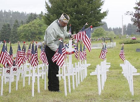 Some children even took part in the ceremony by planting flags on rows of crosses in memory of fallen veterans.