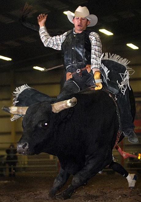 Russel Friend, a veteran cowboy from Irricana, Alberta, drew a bull named "New Kid on the Block" for the short go Friday night at the Rocky Mountain Extreme Bull Riding Challenge at Majestic Valley Arena.