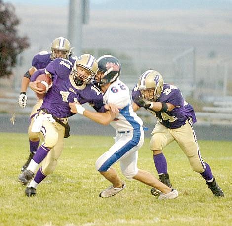 Facing a sidelined starting quarterback and rain-soaked conditions, the Pirates offensive strategy was simple: run the ball. And they did—46 times to be exact—for a whopping 282 yards on the ground, 155 of which came from Doyle and 89 came from Rausch, who also scored two touchdowns. It all helped Polson square their conference record at 1-1 and to 3-2 overall.