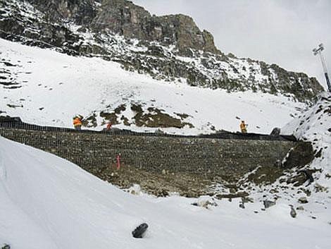 Despite the snow, construction crews have plowed the Sun Highway and continued work there, as they try to shore up the road where it was damaged by flooding last November.
