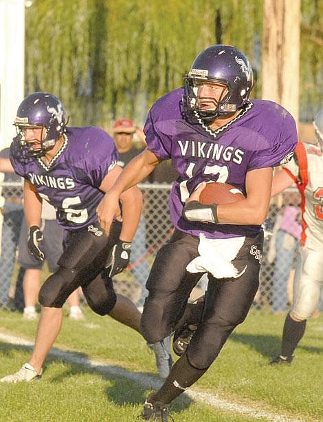 Then it was the defense's turn, as Houston Blevins recovered a fumble in the end zone and, after a Clay Hoyt pass to Sharboro for the two-point conversion, the Vikes led 28-0.