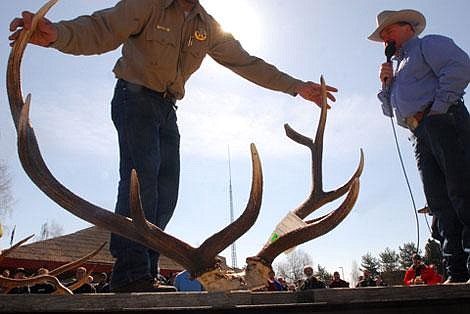 More than 150 items were sold, with Warner keeping the bidding at a brisk pace to finish the auction within three hours. Elk and deer antlers dominated the show, but there was an impressive string of bighorn sheep racks that went on the block. There were bear hides and moose paddles and antelope horns, even a pine marten fur.