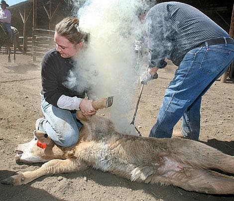 Lindvall said she had never seen a branding before and had a good time, with the exception of the smell of burning fur. The 14-year-old Russell, who weighed about 115 pounds, had a little trouble pinning down some of the 200-pound calves.