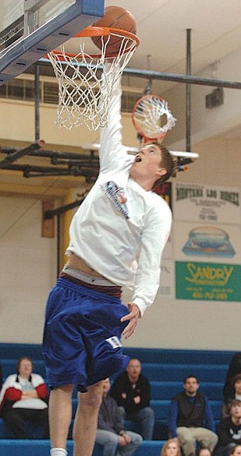 Zach Hansen did his best to earn BHS $100 more in the slam dunk contest. He did not receive a score on his first dunk, which the judges ruled a "push dunk" but did score a round of 8's for his second attempt and completion. Flathead's Brock Osweiller won the dunk contest.