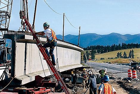 Harmon Crane & Rigging of Kalispell helped pick up and set 360 tons of pre-stressed concrete beams this week, forming the underpinnings for the deck of the U.S. 93 bridge being built over Church Drive north of Kalispell.
