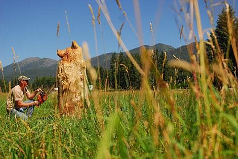 Ken Cushman of Kalispell revs up his Husqvarna 141 with a 16-inch bar. When the sawdust settles, a hunk of Douglas fir has become a celestial vision of Jesus.