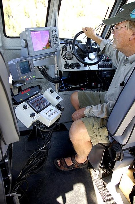 “This tracks where every drop of herbicide goes,” McNabb said as he sat before an array of digital monitors and controls panels sprouting from the deck of his boat. “You can’t get more accurate than this.”