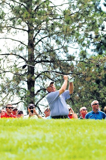 The Sandpoint High School boys and girls golf teams were on hand to hold up portable ropes around each golf shot. Joey Lovell, who has golfed at Sandpoint and LCSC and plans to walk on at Boise State this fall, said he was learning from every shot he watched, impressed with Nicklaus’s ability to joke around while still maintaining concentration every time he hit.