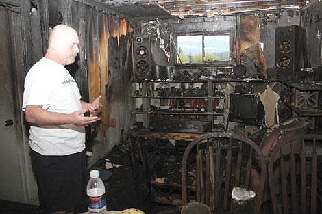 Maybe it is the burnt smell that permeates the apartment, maybe it is the empty, charred cat dishes that occupy the floor of one room or maybe it is the way all of his fire-scorched possessions sit eerily in their usual positions.