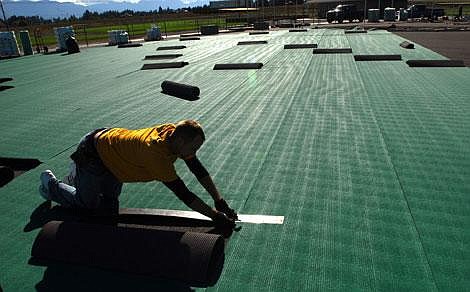 Crews began installing the surface Wednesday, Kidsports President Dan Johns said. The installation should take about six days.