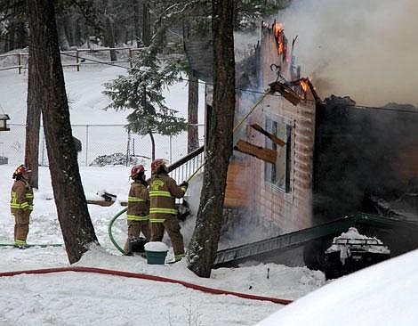 Firefighters from Creston, Badrock and Bigfork fire departments responded to the blaze at about 1:40 p.m., but not in time to save the structure.