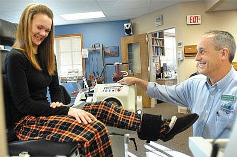 Chloe Thornton, a 14-year-old Flathead High School student, tenderly and tentatively stepped into the Flathead Orthopedic Center for her first go at physical therapy this week. She suffered a torn medial collateral ligament in her left knee on Super Bowl Sunday at Whitefish Mountain Resort.