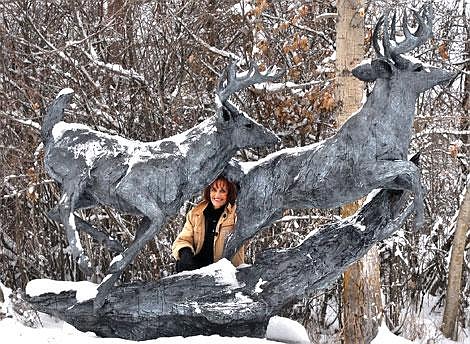 One of her statues is of two sprinting white-tail deer that went to a private client in Colorado.