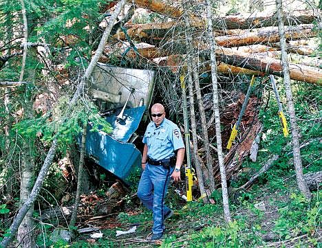 “I hiked down to the bottom and looked at the truck and it was really bad — a scary ride,” said Regehr trucker Gerald Unruh of Bonners Ferry. “It tore the cab clear off the frame of the truck.”