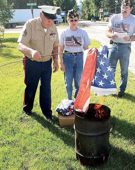 The last of the flags burned Saturday was a special one because it used to fly over Mullan Square, and it would now be retired in that same place.