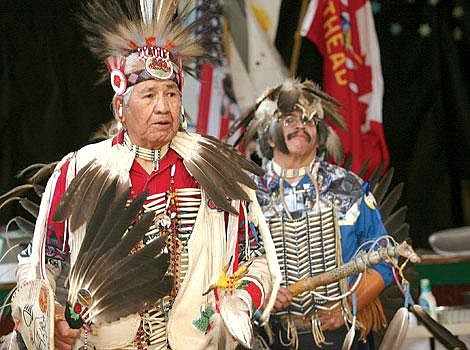 Patrick Pierre, a Pend d’ Oreille Indian and a resident of Rainbow Lake, offered the opening prayer. Pierre, one of the tribe’s spiritual leaders, spoke in Salish and in English. The 79-year-old Pierre has been dancing at powwows since he was 5 years old when he was a student at Camas Prairie School in the 1930s.