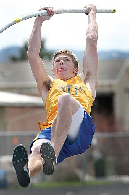 A small crowd gathered at the pole vaulting site during the 8B District Track Tournament at Kalispell Saturday. Most of the converging spectators were Thompson Falls athletes there to cheer on one of their own. Brian Schenavar had already secured first place at the pole vault with a height of 14 feet, 3 inches. Now the senior wanted to clear 15 feet to break his own record of 14 feet, 10 inches.