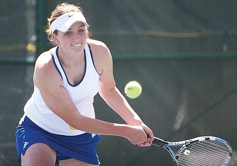 At the Western A divisional tennis tournament in Kalispell, Libby’s Jackie Mee repeated last year’s performance to win the championship match against Whitefish’s Brielle Menegazzi (no. 2), 6-3, 6-1.
