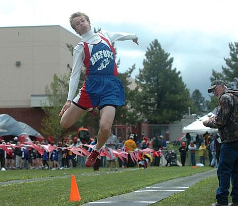 Triple Jump - 1. Roland Benedict, Bigfork, 43-10.75; 2. Seth Wright, Libby, 43-7.25; 3. Tyler Wilde, Frenchtown, 43-5.25; 4. Brady Sunheim, Sidney, 42-1.75; 5. Isaac Hunter, Stevensville, 41-3.5; 6. Austin Robbins, Columbia Falls, 41-0.