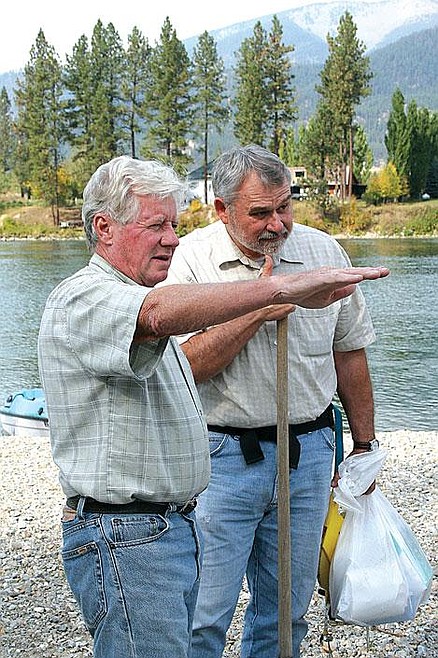 Along the banks of the Thompson Falls Resevoir Thursday, University of Montana Geomorphologist Johnnie Moore bent down to take several sediment samples from the property of Thompson Falls resident, Jon Sonju. Moore was searching for contaminants that washed downstream from the Milltown Dam, breached last March. Sonju, a geologist, invited Moore to test the sediment after he noticed a green discoloration of the water near his home at the edge of the river. Moore has conducted previous research in conjunction with the U.S. Geological Survey and PPL Montana, which owns the Thompson Falls hydroelectric dam on the Clark Fork River.