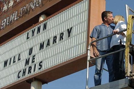Trumpeted to all the U.S. 2 traffic driving past Western Building Center's Evergreen store, the query went up on Friday night: "Lynn, Will U marry me? Chris."