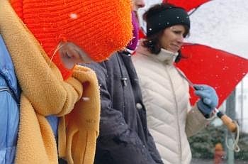 Snow swirled around Kayla Yeager as she adjusted her umbrella to block the biting wind on Tuesday.