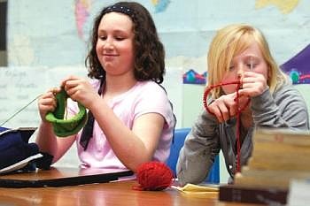 "Sometimes when we're done with schoolwork, we can read or knit," said Natalie Krueger, who nearly always chooses the latter.
