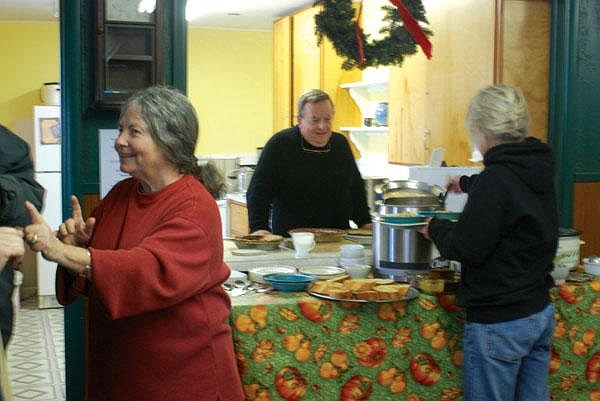 Two pots of homemade soup will be served. Last Thursday, Sharon made beef barley soup. Another donation of a crock of chili was there as well.
