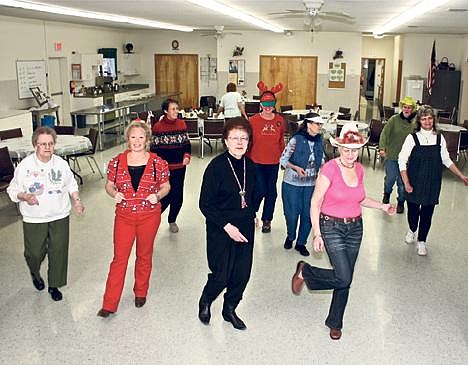Lily, who grew up dancing polkas and waltzes in Minnesota, has been teaching since 1995, when she started her first “Boot Scooters” group at the senior center in Monroe, Wash. She formed a local dance class in Clark Fork in 2000 and moved it to the Sandpoint center about 18 months ago. Since that time, her class size has averaged between 16-18 dancers — mostly women.