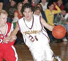 Troy senior Shado Garrett put the defensive hurt on Noxon’s top scorer – Cody Linderman. The Devil senior leads his league in scoring at around 20 points per game and hit for 30-plus in a game against the Trojans earlier this season. But this time around, he shot 0-for-12 from the field and had zero points.