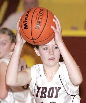 Molly Harpole led the Lady Trojans with 14 points on 5-of-12 shooting and 3-of-6 free throws. She also grabbed nine rebounds and committed just one foul.