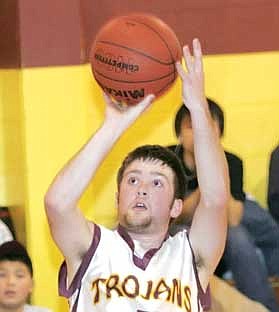 Trojans senior Clayton Kyriss kept putting up the 3-pointers and finished with five on the night. Even on his misses, Kyriss was just a few inches off target. He had 19 points for the game.